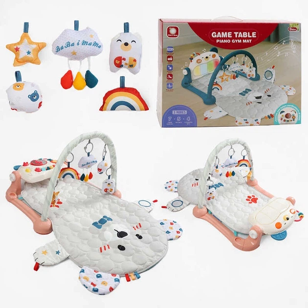 Коврик HX 9158 A Штрих = 50972 СИНІЙ, розмір - 99х61 см, висота дуги - 45 см, 5 підвісок - брязкалець, піаніно - бізіборд, п
