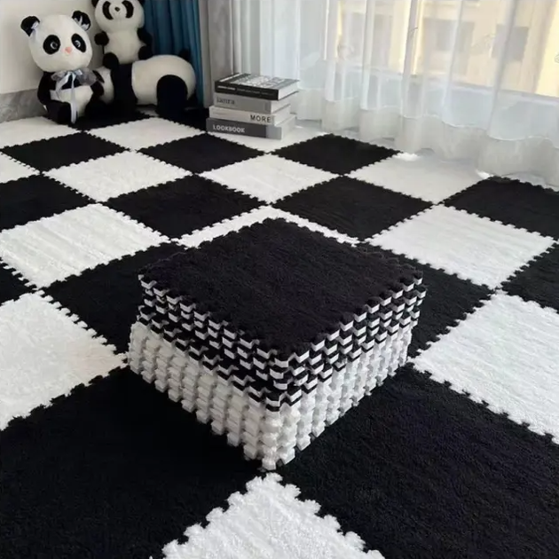 Килимок-пазл 12шт (6+6) - 30х30см антиковзний з піни з плюшевим ворсом Білий з чорним