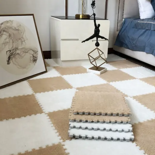 Килимок-пазл 12шт (6 + 6) - 30х30см антиковзний з піни з плюшевим ворсом Бежевий з білим