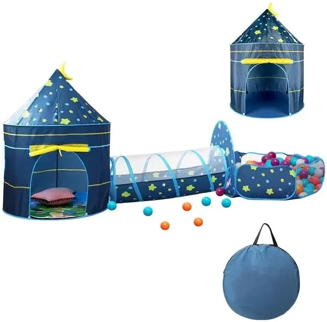 Дитячий ігровий намет RIAS "Замок" 3в1 з тунелем та басейном для кульок Blue (304895)