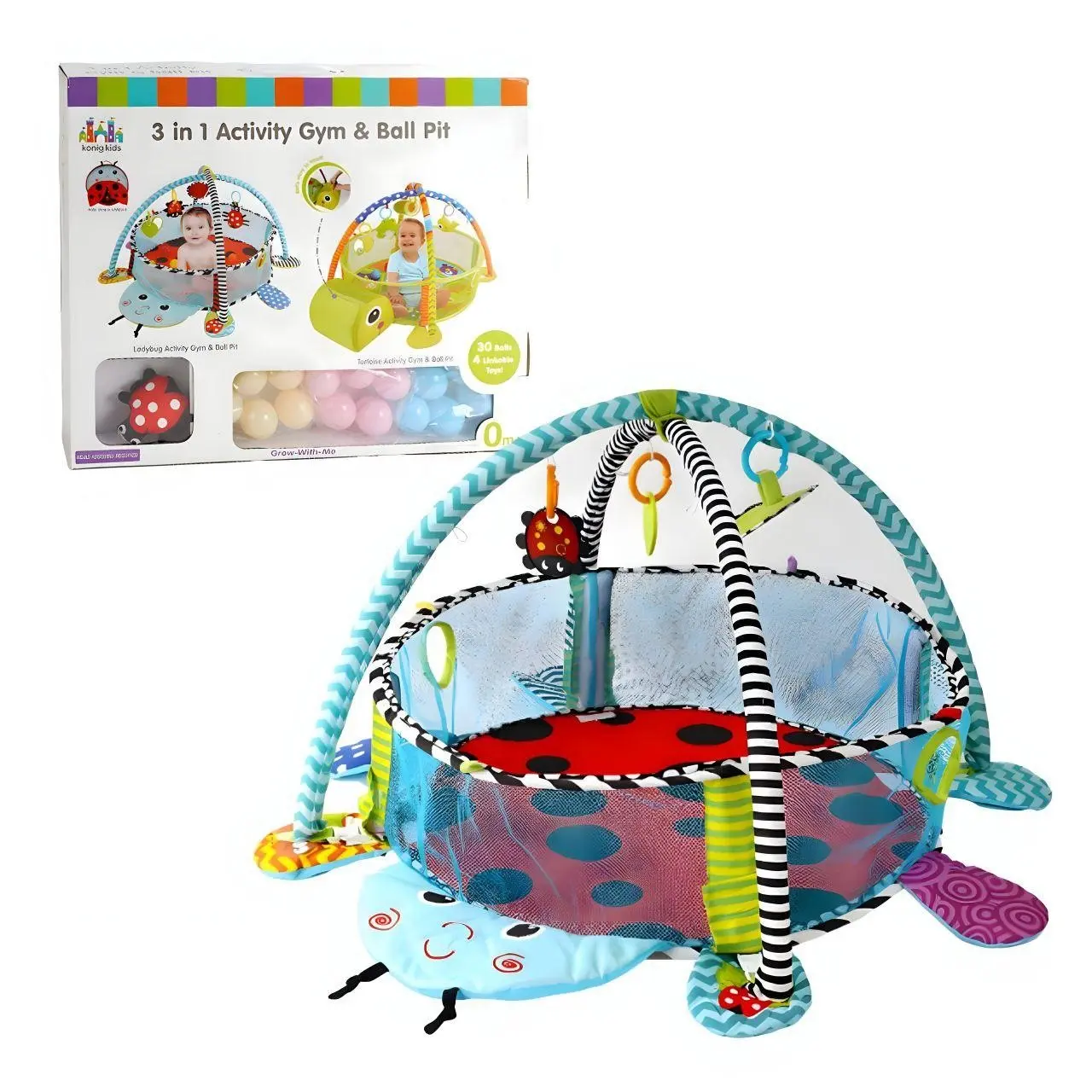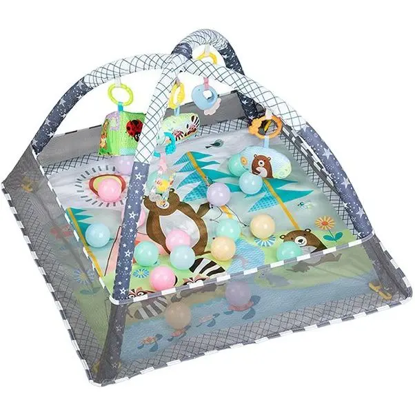 Дитячий ігровий килимок 2 в 1 з манежем, м'якими дугами та 30 кольоровими кульками для малюків від народження