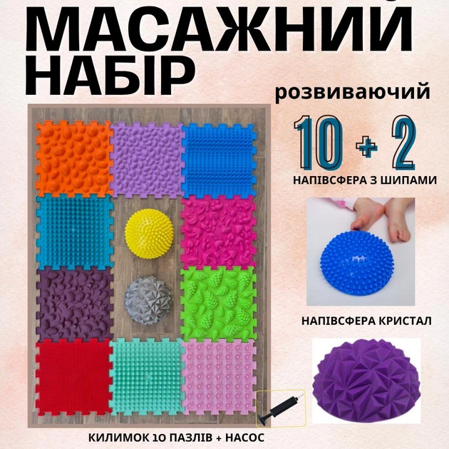 Масажний килимок 10 килимків для ніг + півсфери 2 шт. для реабілітації профілактики лікувальної гімнастики стопи набір з нас