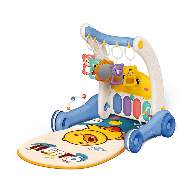 Музичний ігровий килимок-ходунки з піаніно іграшками та дзеркальцем 2в1 блакитний