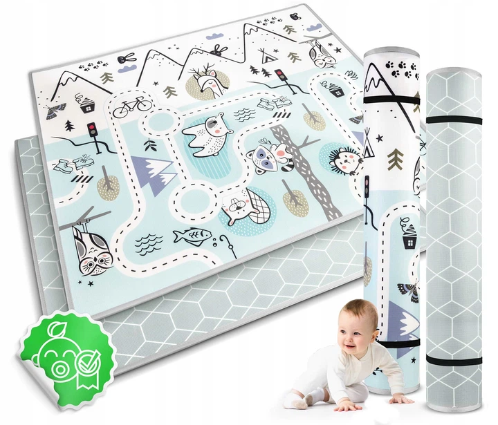 Коврик із піні що скручується 180 х 150 1,5 см Nukido блакитний освітній двосторонній великий 180x150 см