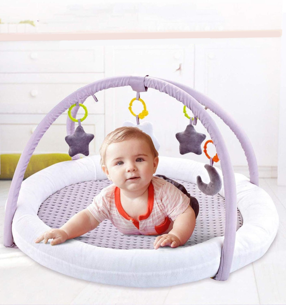 Розвивальний дитячий килимок, килимок із м'якими бортиками та іграшками, ігровий килимок для малюків, сірий