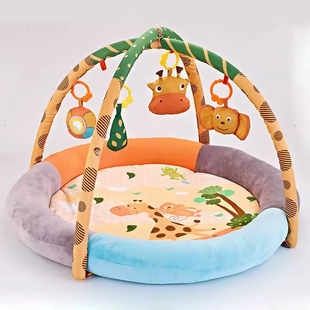 Розвивальний дитячий килимок яскравий з м'якими бортиками та іграшками різнокольоровий