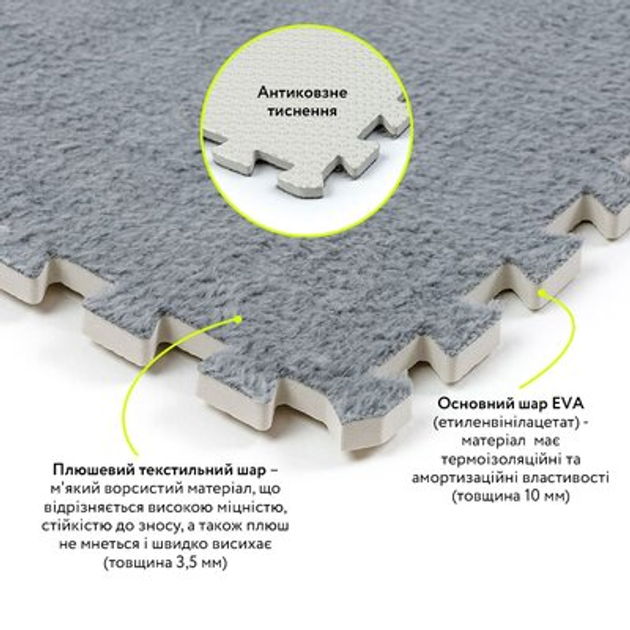 Підлога-пазл плюшевий СВІТЛО-СІРИЙ 60*60*1cm