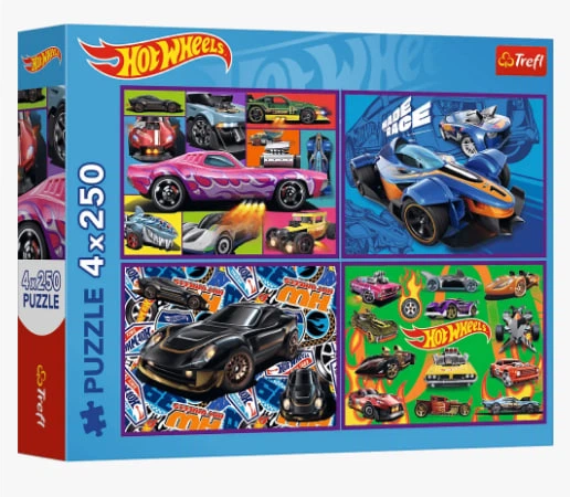 Пазли (4х250 елм.) "Гоночні автомобілі" Hot Wheels