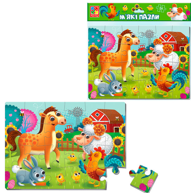 М'які пазли Vladi Toys «Ферма», 24 елементи, пазл для малюків, гра, що розвиває, безпечний матеріал