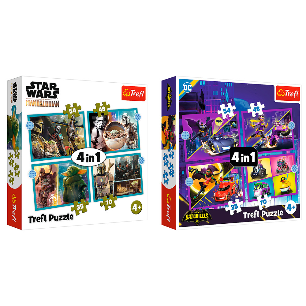 Набір пазлів Trefl Мандалоріан та Зустрічайте транспорт Бетмена 4 в 1 в асортименті (34397/34658) 34397/34658