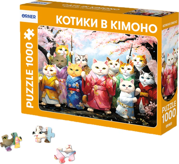 Пазли Orner Котики в кімоно 1000 елементів Картонний (orner-2348)