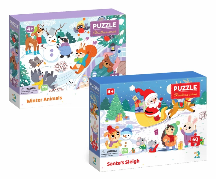 Пазл Картонний Дитячий Dodo Новорічний Різдвяний "Зимові Тваринки" 60 деталей