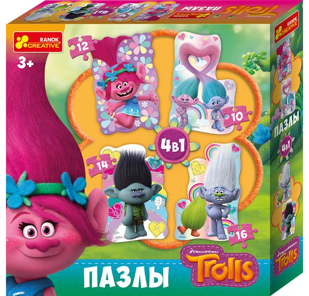 Пазли 4 в 1 3+ "Троллі" 15189030Р Ранок