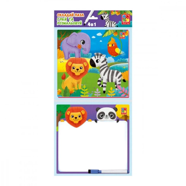 Розвиваючий набір 4 в 1 "Зоопарк" VT2002-02 пазл, розмальовка. Маркер