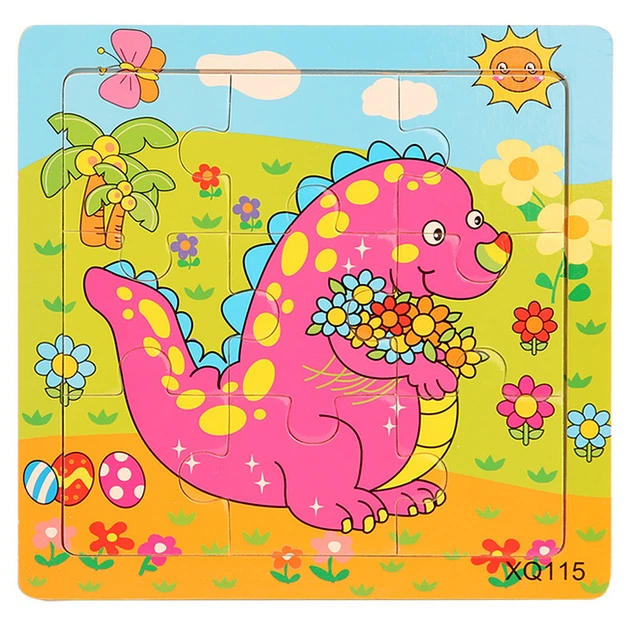 Рамка-пазл дерев'яний з 9 елементів 15x15 см Динозаврик