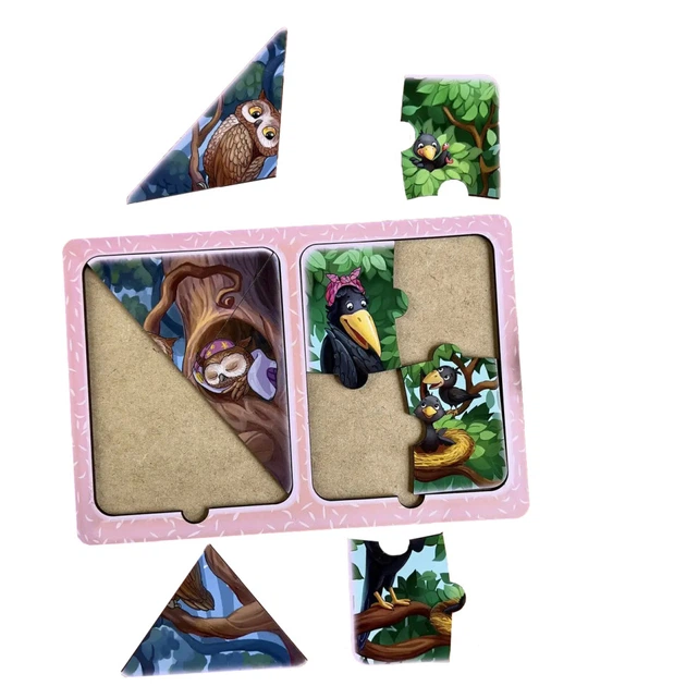 Дерев'яний пазл-вкладиш "Ворони та сови" Ubumblebees (ПСД187) PSD187 у рамці