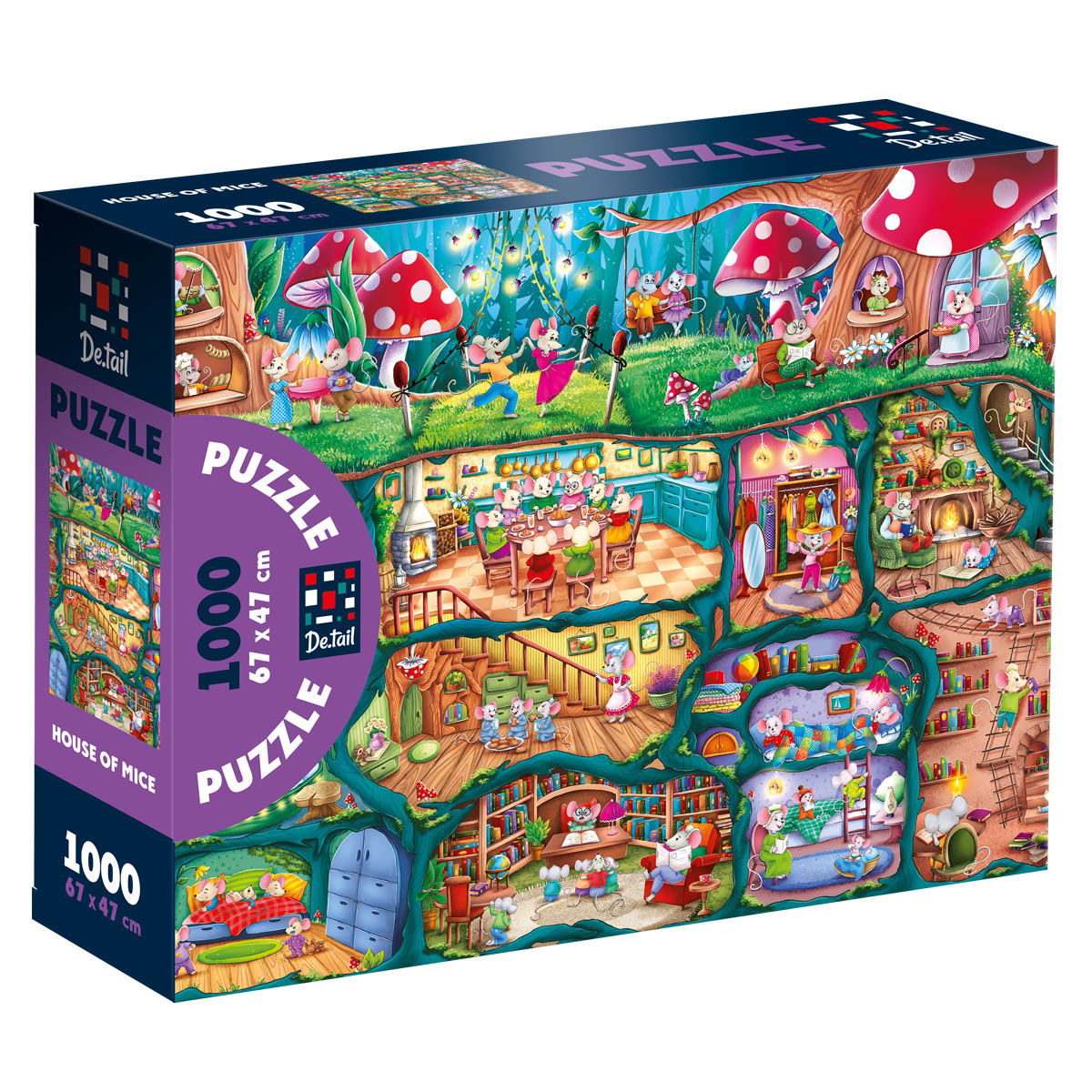 Пазл De.tail Будиночок мишенят 1000 деталей відкриє яскраву картину усього простору, в якому мешкають мишенята. Складайте наодинці або усією родиною пазл, даруючи собі години релаксу. Граємо та тренуємо пам’ять, уяву, дрібну моторику, увагу. Комплектація: 1000 пазлових деталей; постер. Розмір готового пазла: 67 х 47 см. Матеріал: міцний картон. Рекомендовано для дітей від 8-ми років.