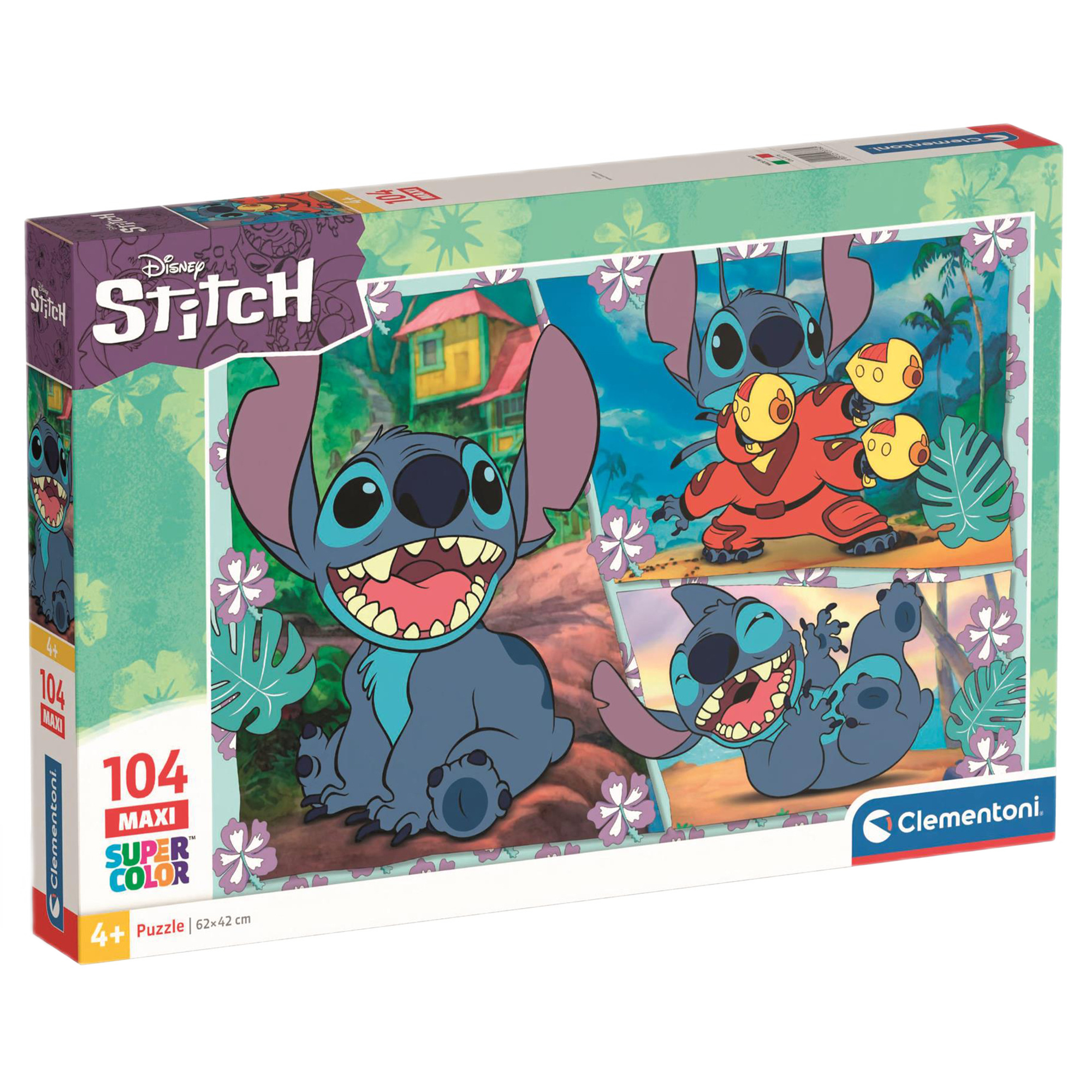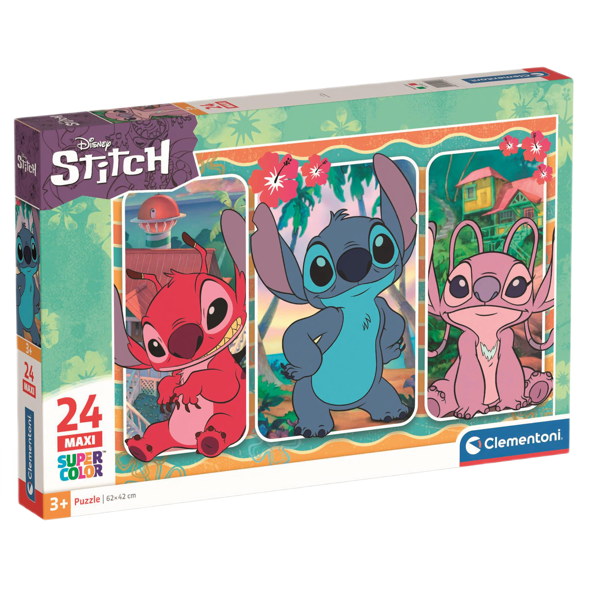 Пазл Clementoni Maxi Stitch 24 елементи із зображенням героїів улюбленого мультфільму "Ліло і Стіч". Місія бренду Clementoni – розвивати дрібну моторику, мовлення та логічне мислення, розширювати словниковий запас та вчити відкривати нові горизонти. Особливості: виготовлені з міцного та цупкого картону; ексклюзивна технологія друку і, як наслідок, – насичені кольори, що привертають увагу та закликають до гри; елементи, зручні для маленьких рученят; розмір зібраної картини – 62х42 см. Складання пазлів стимулює допитливість та уяву, розвиває моторику, посидючість та концентрацію уваги. Рекомендовано для дітей від 3-х років.