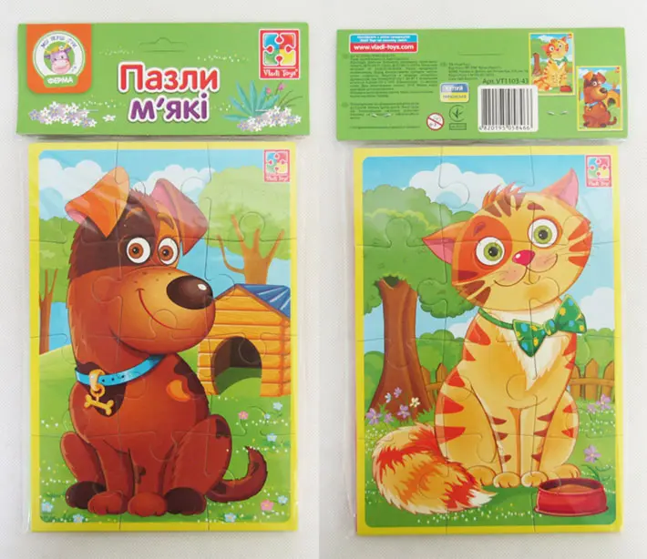 Пазли м’які Котик та песик, А5 (укр) VT1103-43