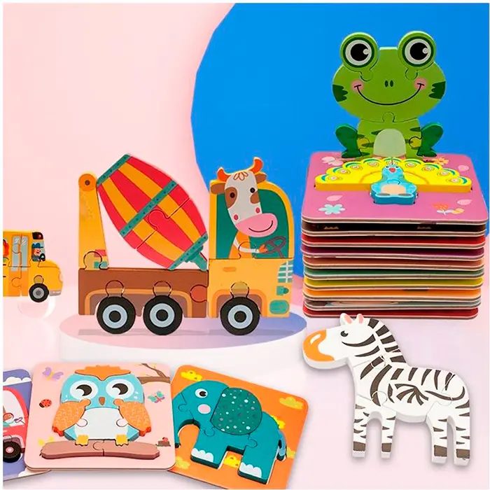 Дерев’яна іграшка Пазли (тварини, птахи, транспорт), 15x15x0.5 см (В асортименті)