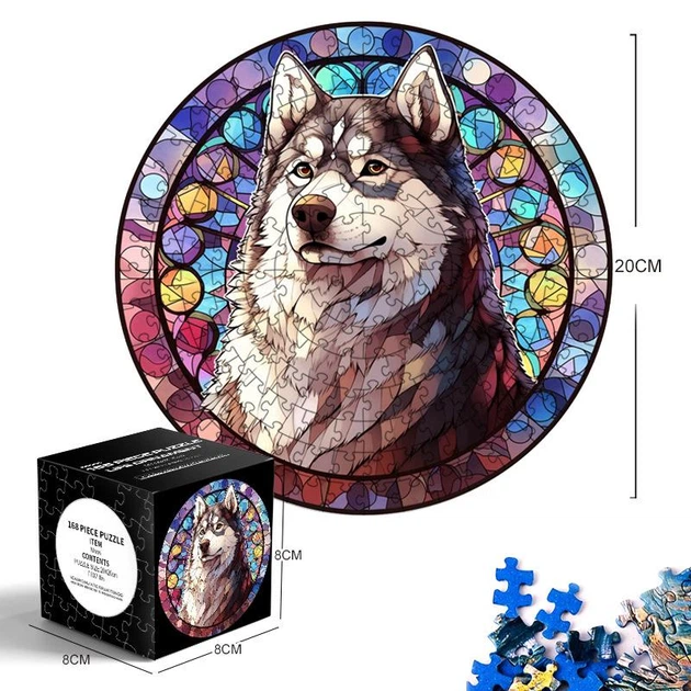 Дитячі круглі пазли Хаскі вітраж 168 елементів, 20 см діаметр