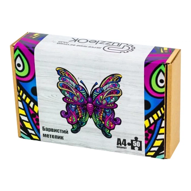 Фігурний дерев'яний пазл A4 Барвистий Метелик PuzzleOK PuzA4-01723, 60 деталей