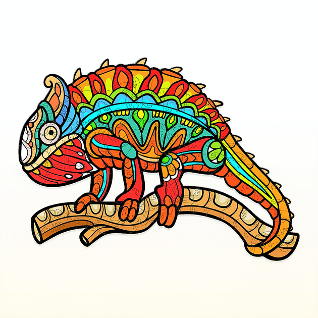 Дерев'яний пазл для дітей та дорослих WOODI-Загадковий хамелеон 26*20см 75 деталей(Картонна коробка)