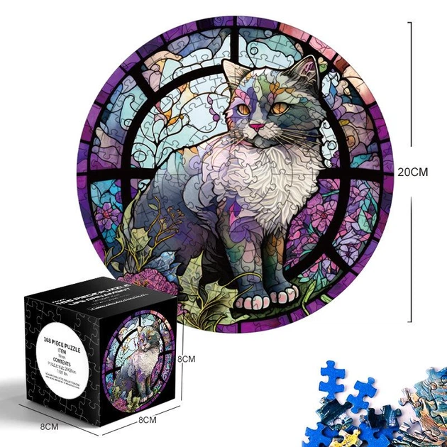 Дитячі круглі пазли Кішка вітраж 168 елементів, 20 см діаметр