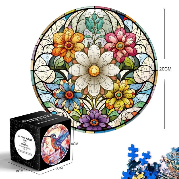 Дитячі круглі пазли Квіти вітраж 168 елементів, 20 см діаметр