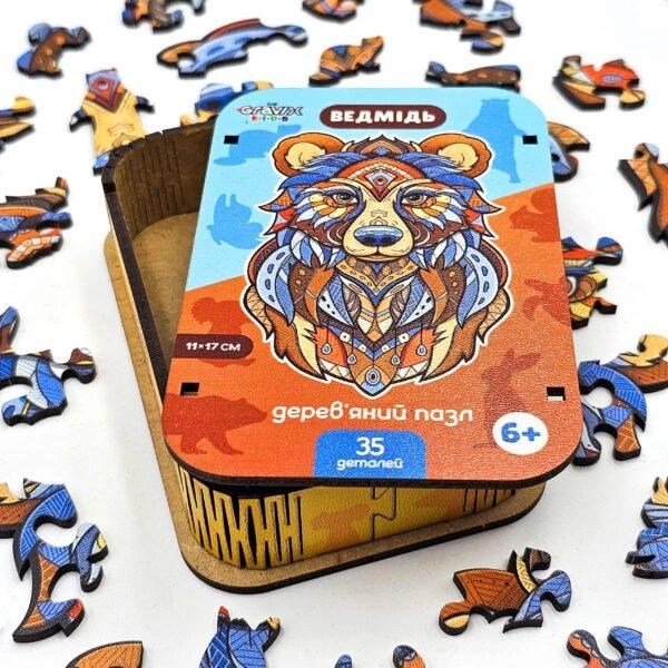 Пазл дерев'яний фігурний Ведмідь 35 деталей 1117 см етнічний стиль для дітей від 6 років