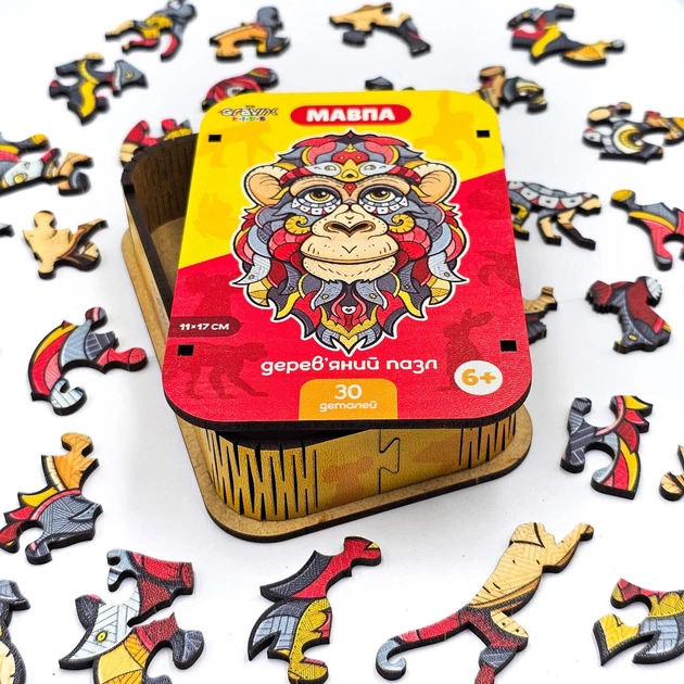 Пазл дерев'яний фігурний Мавпа 30 деталей 1117 см яскравий етнічний для дітей від 6 років