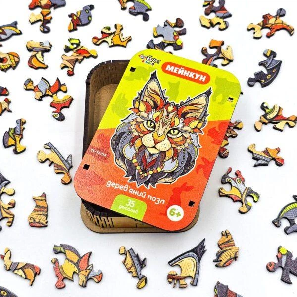 Пазл дерев'яний фігурний Мейнкун 35 деталей 1117 см кіт для дітей від 6 років