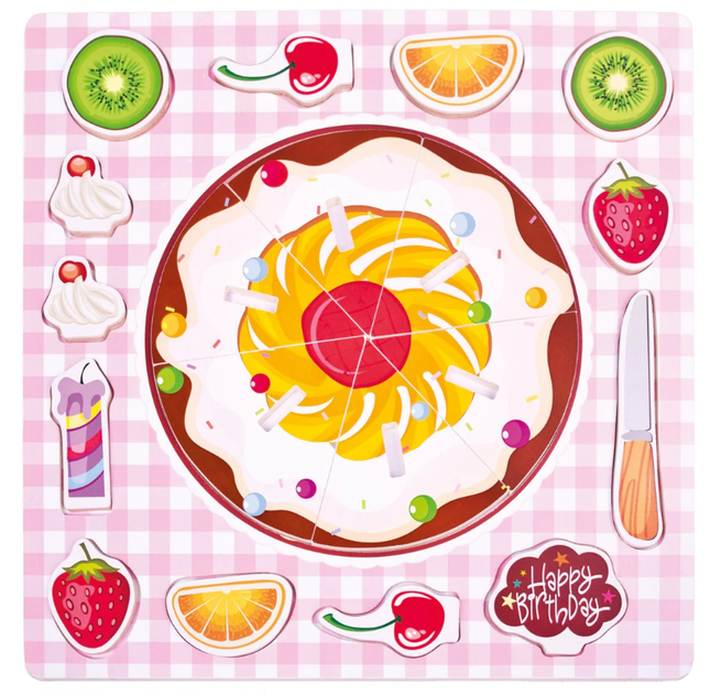 Дерев'яна рамка-вкладиш Bino «Пазл Торт» 18,5 см, 12 деталей, розвиваюча гра для дітей від 3 років