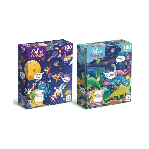 Набір пазлів Dodo Look and Find Країна динозаврів та Шалений космос