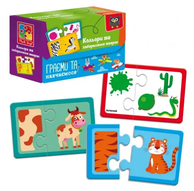 Пазли Знайди пару. Кольори та забарвлення тварин (українською)