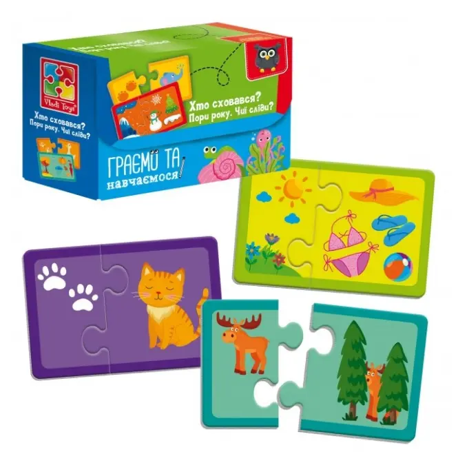Пазли Знайди пару. Пори року. Чиї сліди? Хто заховався (українською)