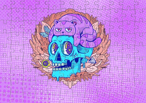 Пазл Із Маленькими Елементами Череп З Котом Розмір A4