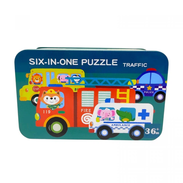 Пазли дитячі Транспорт, деревяні, 6 пазлів, пронумеровані, в боксі MIC C73875