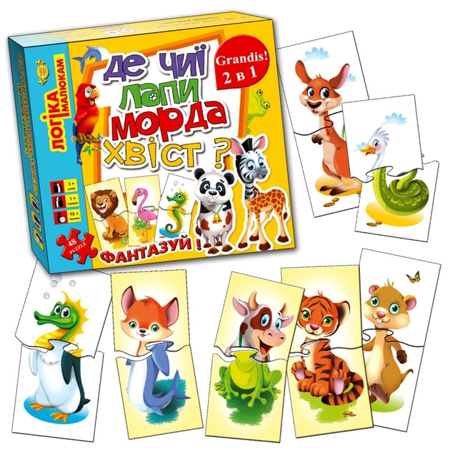 Дитячий пазл Де чиї лапи морда хвіст 24 деталі для розвитку логічного мислення та моторики ігри для дітей від 3 років (55583