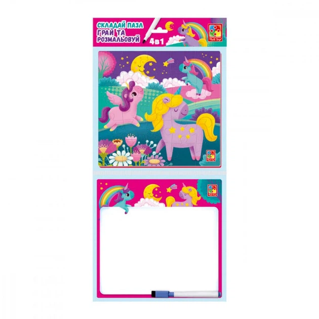 Розвиваючий набір 4 в 1 "Єдиноріжки" vt2002-05 пазл, розмальовка, маркер