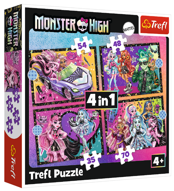 Пазли 4 в 1 Напружений день. Монстр Хай (35,48,54,70 ел.) 34655 (Trefl)