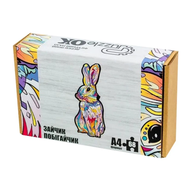 Фігурний дерев'яний пазл A4 Зайчик побігайчик PuzA4-00757, 68 деталей