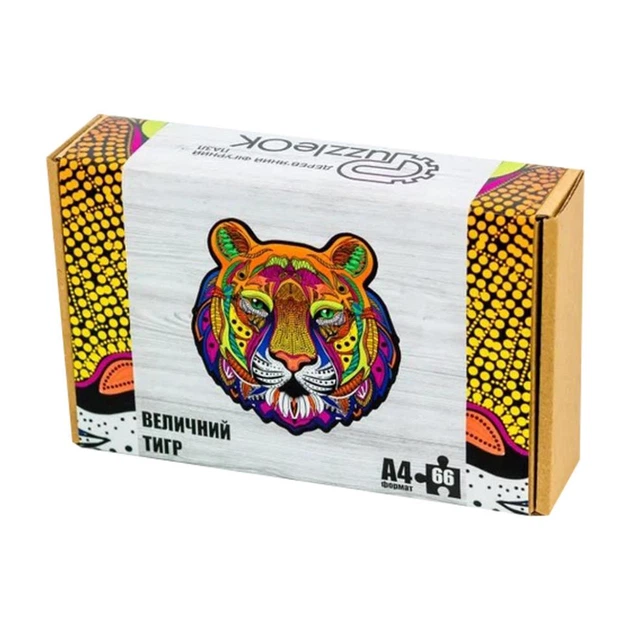 Фігурний дерев'яний пазл A4 Величний Тигр PuzA4-01721, 66 деталей
