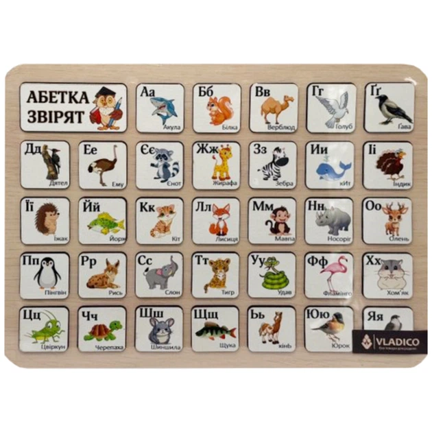 Дерев'яний пазл-вкладиш "Звірята" Vladico 3240-04-001 розмір 33х25 см