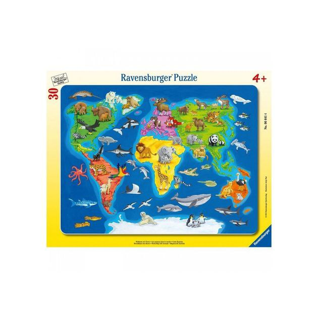 Пазл Ravensburger «Карта світу з тваринами», 30 деталей
