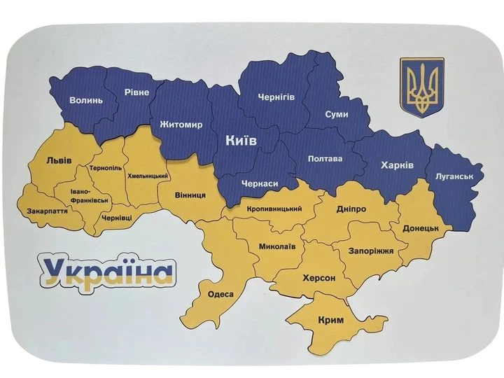 Дерев'яний Пазл "Карта України", кольорова, 35*23 см, розвиваючі конструктори і пазли