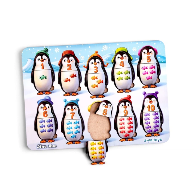 Дерев'яний пазл-вкладиш "Пінгвінчики" Ubumblebees (ПСД164) PSD164 рахунок