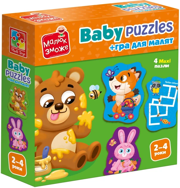 Пазли картонні Vladi Toys з грою Лісові звірі (укр) (VT1722-26)