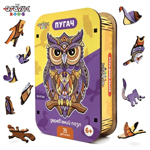 Дерев’яний Пазл для дітей The Gravix “Пугач Фігурний” 35 деталей