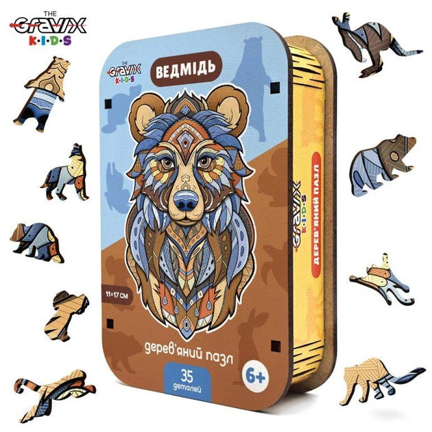 Дерев’яний Пазл для дітей The Gravix “Ведмідь Фігурний” 35 деталей